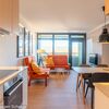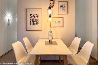 Diese 47qm große, 2-Zimmer Ferienwohnung mit seitlichem Meerblick bietet Platz für bis zu 4 Personen und befindet sich im 7. Stock des Olympia Hotel Schilksee. Die Wohnung wurde liebevoll eingerichtet. Sie ist bequem mit dem Fahrstuhl erreichbar. Der offene Wohn- und Essbereich ist lichtdurchflutet und verfügt über eine kuschelige Couch, einen LCD-Fernseher und einen Esstisch für vier Personen. Durch Gardinen kann der Raum abgedunkelt werden. Die angrenzende Küche ist mit einem Cerankochfeld, und einem Kühlschrank mit Gefrierfach ausgestattet. Auch eine Kaffeemaschine, eine Nespresso Kapselmaschine, ein Toaster und ein Wasserkocher sind vorhanden.